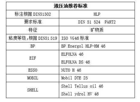 1¡¢ÒºÑ¹ÏµÍ³¼ÓÂú¿óÎïÖʵÄҺѹÓÍ(HLP46#)»òÒԺϳÉõ¥Îª»ù´¡µÄÉúÎï½µ½âҺѹÓÍ(HLP-E46#)»ò²»Ò×ȼҺѹÓÍ(HFC46).±Ã³µ³ö³§Ê±²ÉÓÃÃÀæÚ»ò¿ÇÅÆ46#ҺѹÓÍ£¨Ô¼700Éý£©¡£