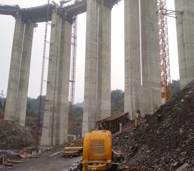 •       永吉高速互通连接桥的项目中,采用我公司HBT80-1616-90ES四台泵,顺利实现了C50砼水平50M, 高100M,上平距离200M,四跨连续浇注的佳绩。